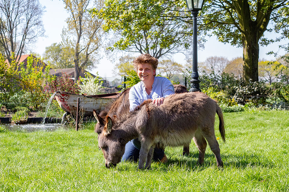 We gaan de mest opruimen, het water bijvullen en natuurlijk de ezels borstelen/knuffelen.